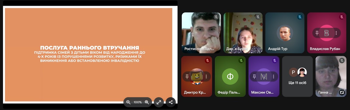 Під час зустрічі учасники обговорили ключові права дитини, важливість раннього втручання для сімей з дітьми, які мають або можуть мати порушення розвитку, а також роль безбар’єрності у забезпеченні рівних можливостей з раннього віку. Студенти опрацювали практичні ситуації підтримки сімей та визначили типові бар’єри, що заважають доступу до якісних освітніх і соціальних послуг.