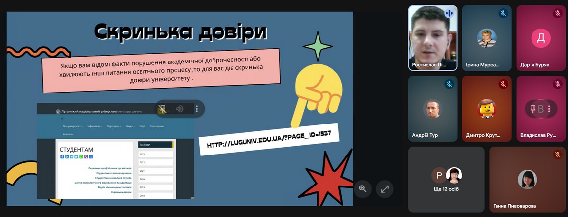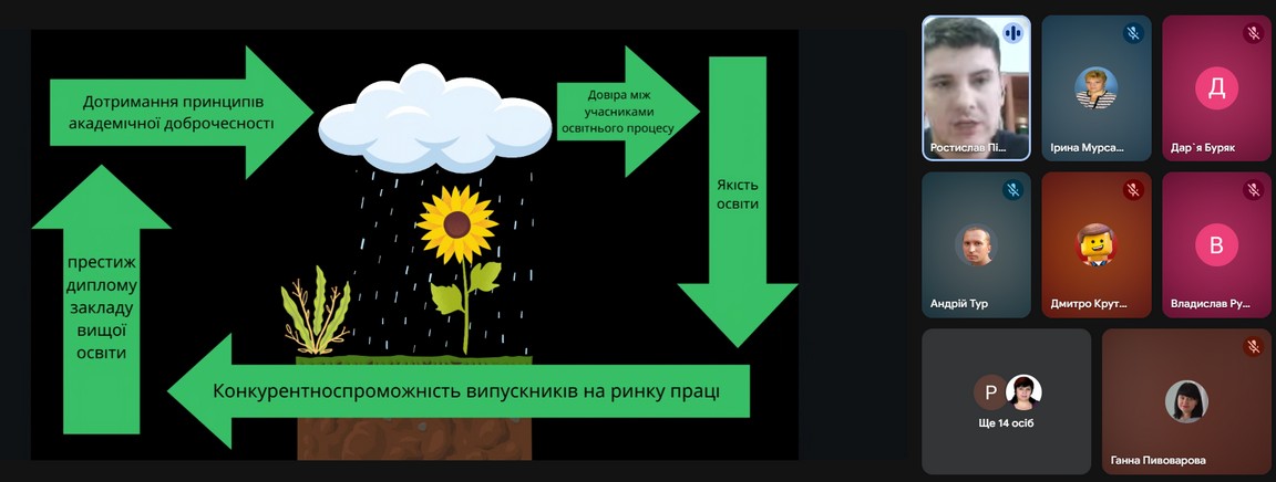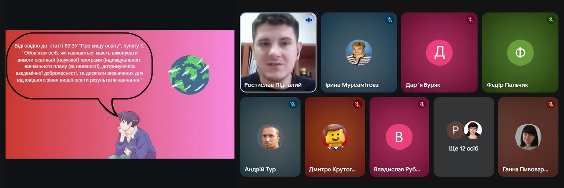 Захід пройшов у змістовній, відкритій та доброзичливій атмосфері. Організатори переконані: формування академічної культури – це спільна справа всього освітнього колективу, і такі зустрічі сприяють розвитку відповідального та свідомого студентського середовища.