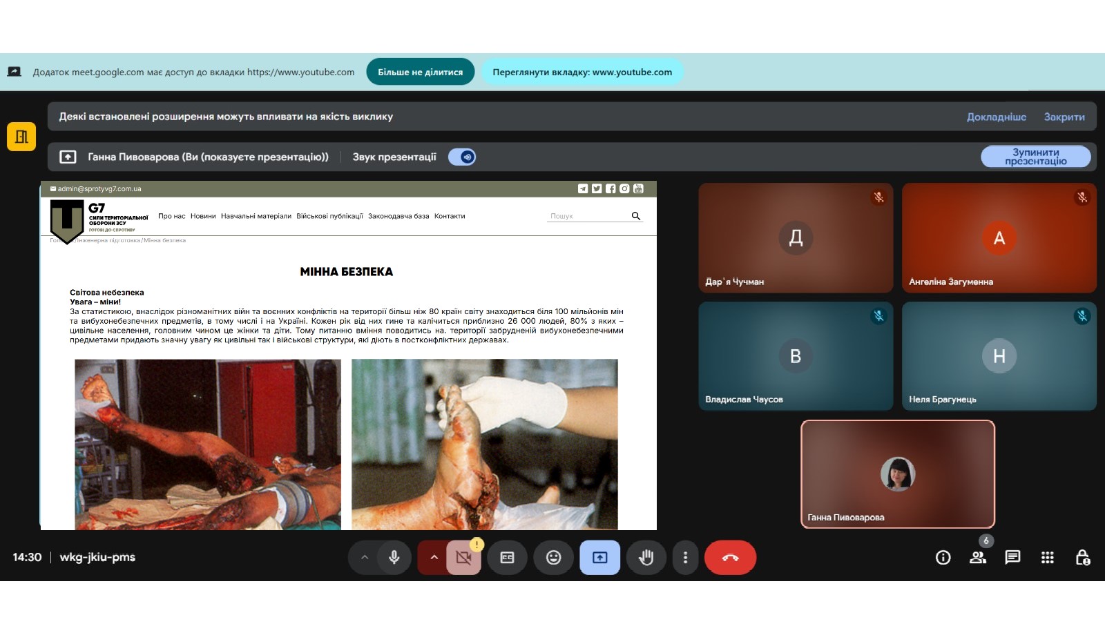 Студенти ознайомилися з актуальною інформацією про маркування небезпечних територій, типи мін та інших боєприпасів, а також отримали рекомендації щодо безпечної поведінки під час пересування населеними пунктами та за їх межами.
