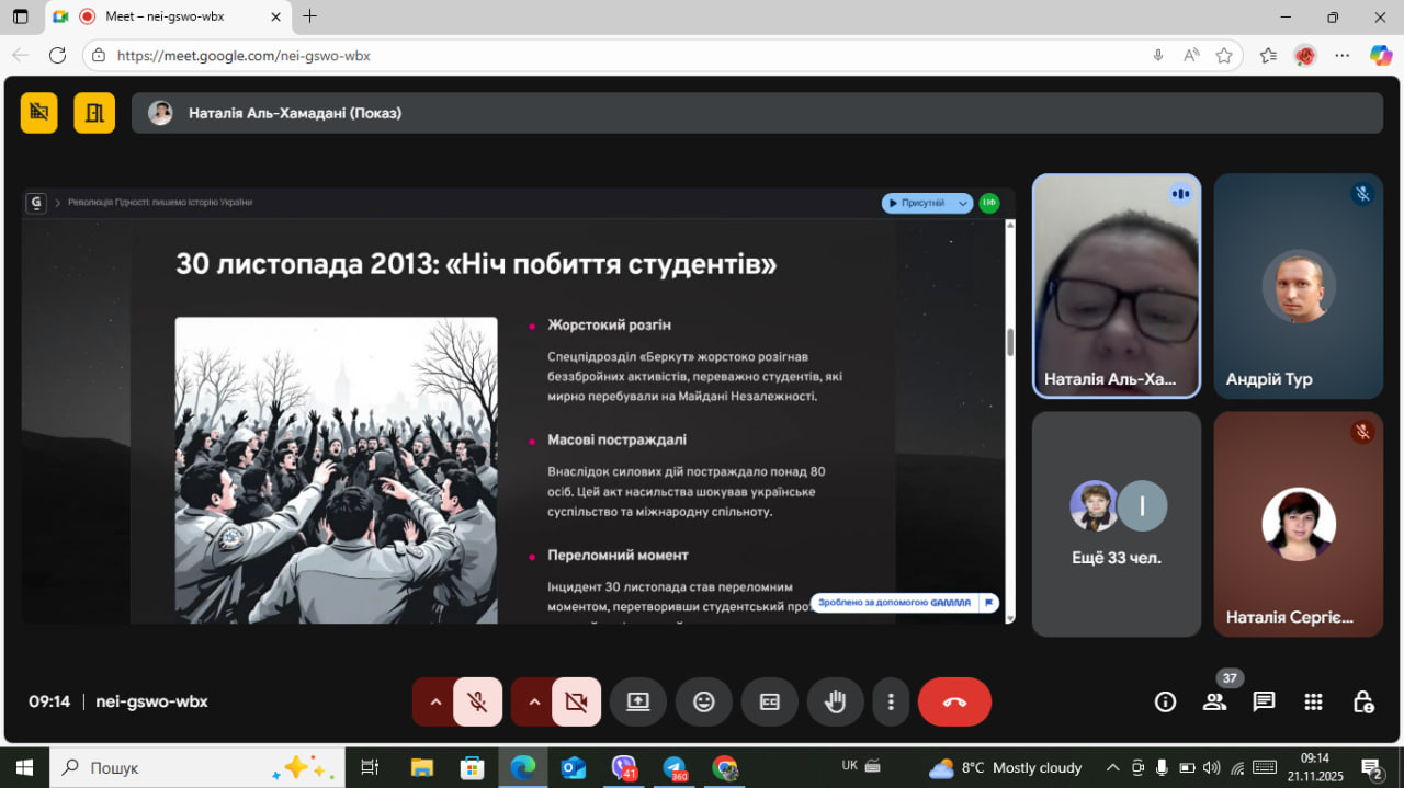 Під час заходу викладачі та колеги згадали події на Майдані, визначили переломні моменти для новітньої історії України: українці на весь світ заявили про свою готовність захищати європейські цінності, свободи та принципи демократії.