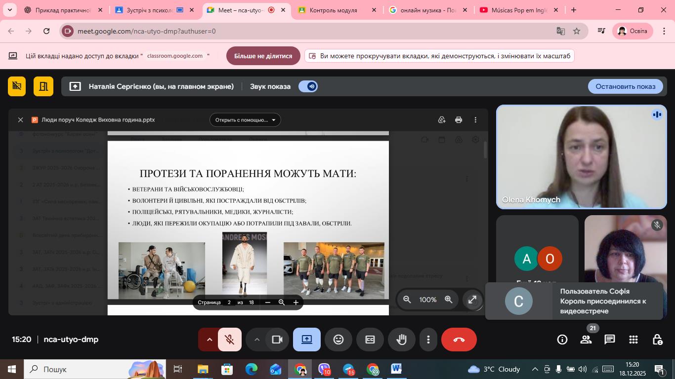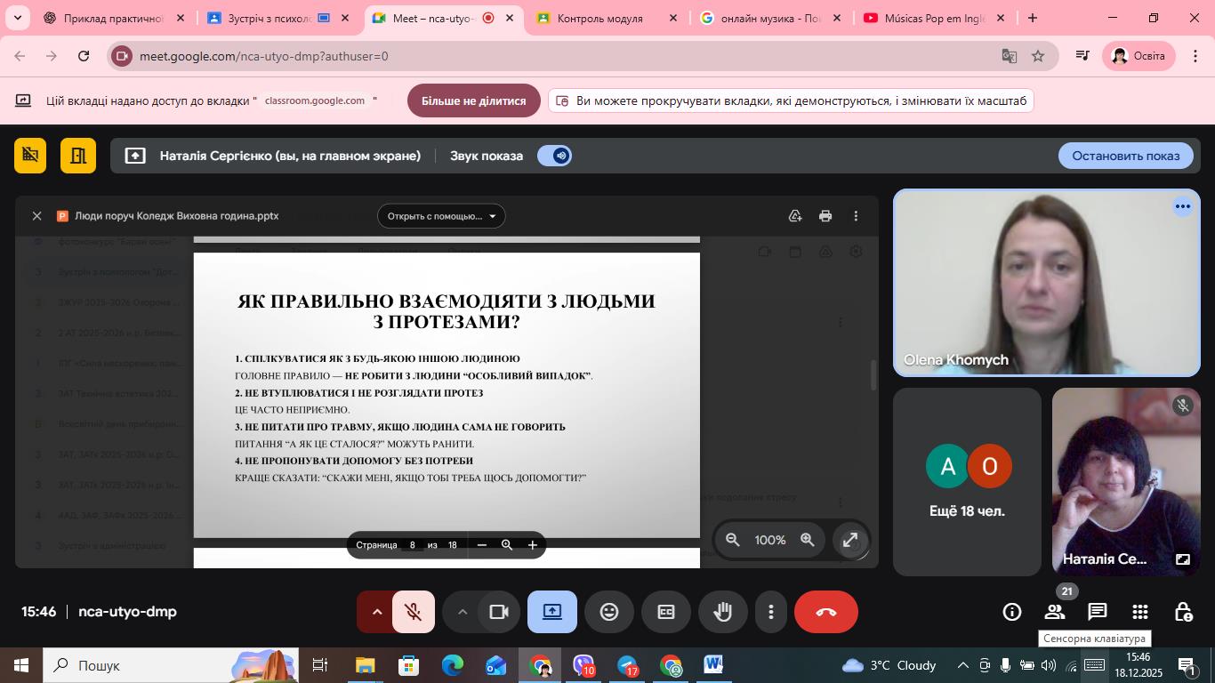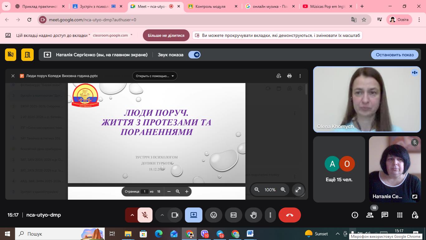 У ВСП «Лисичанський педагогічний коледж ДЗ “Луганський національний університет імені Тараса Шевченка”» 18 грудня відбувся урок безбар’єрності на тему «Люди поруч. Життя з протезами та пораненнями» (зустріч з психологом Хомич О.М.).