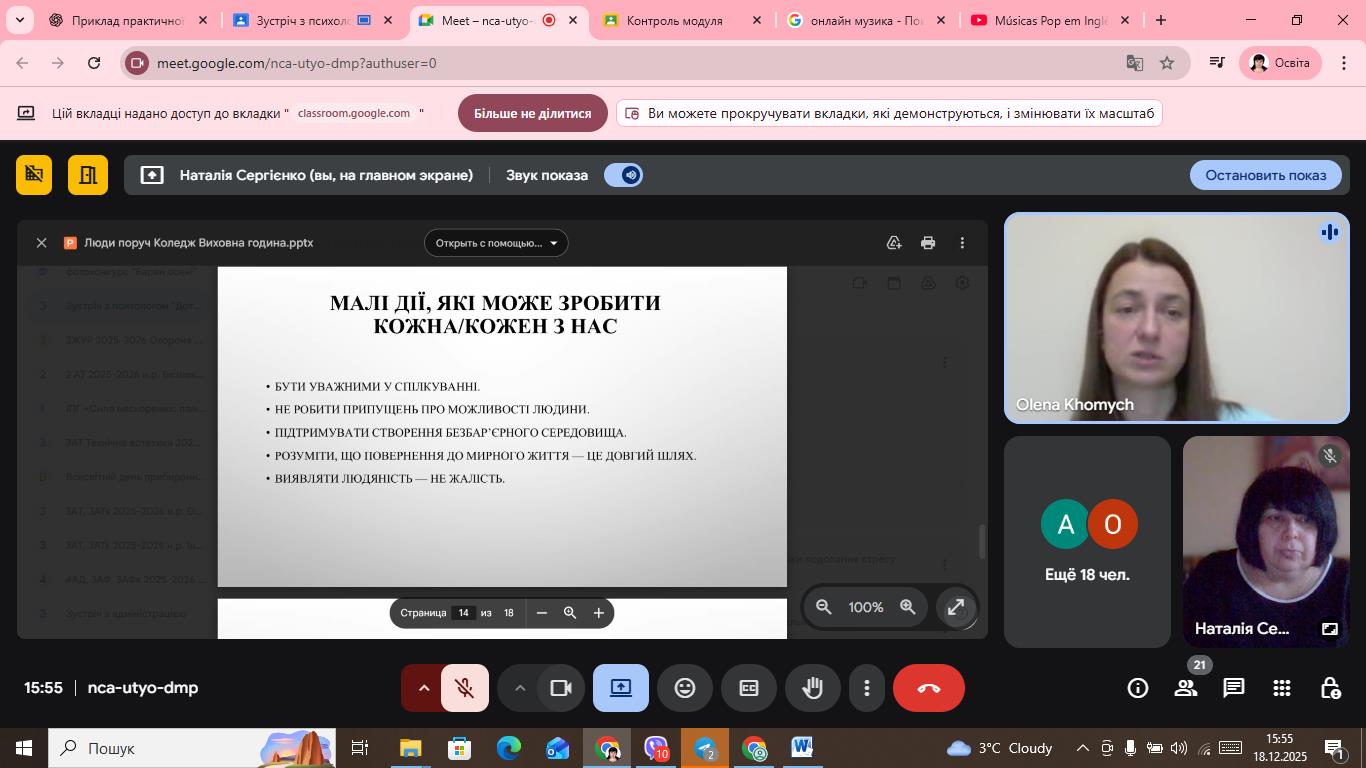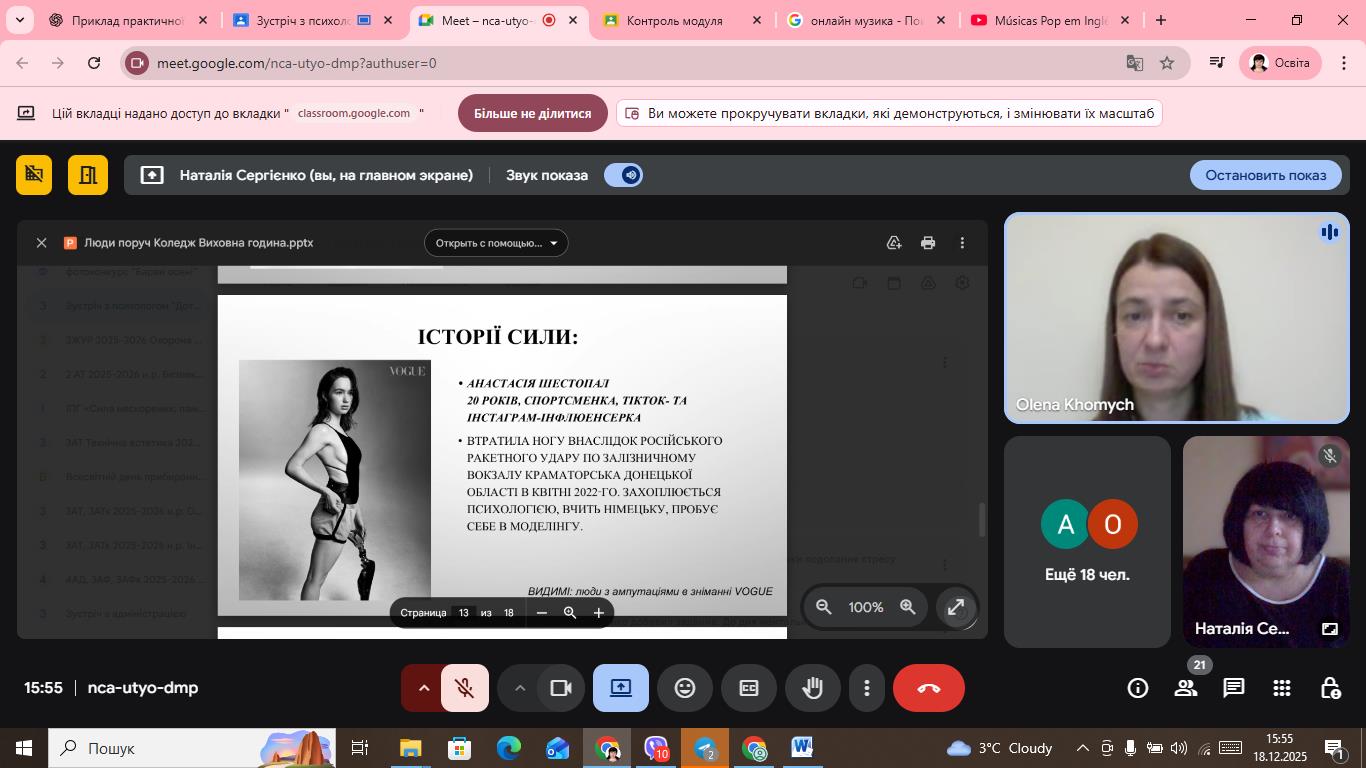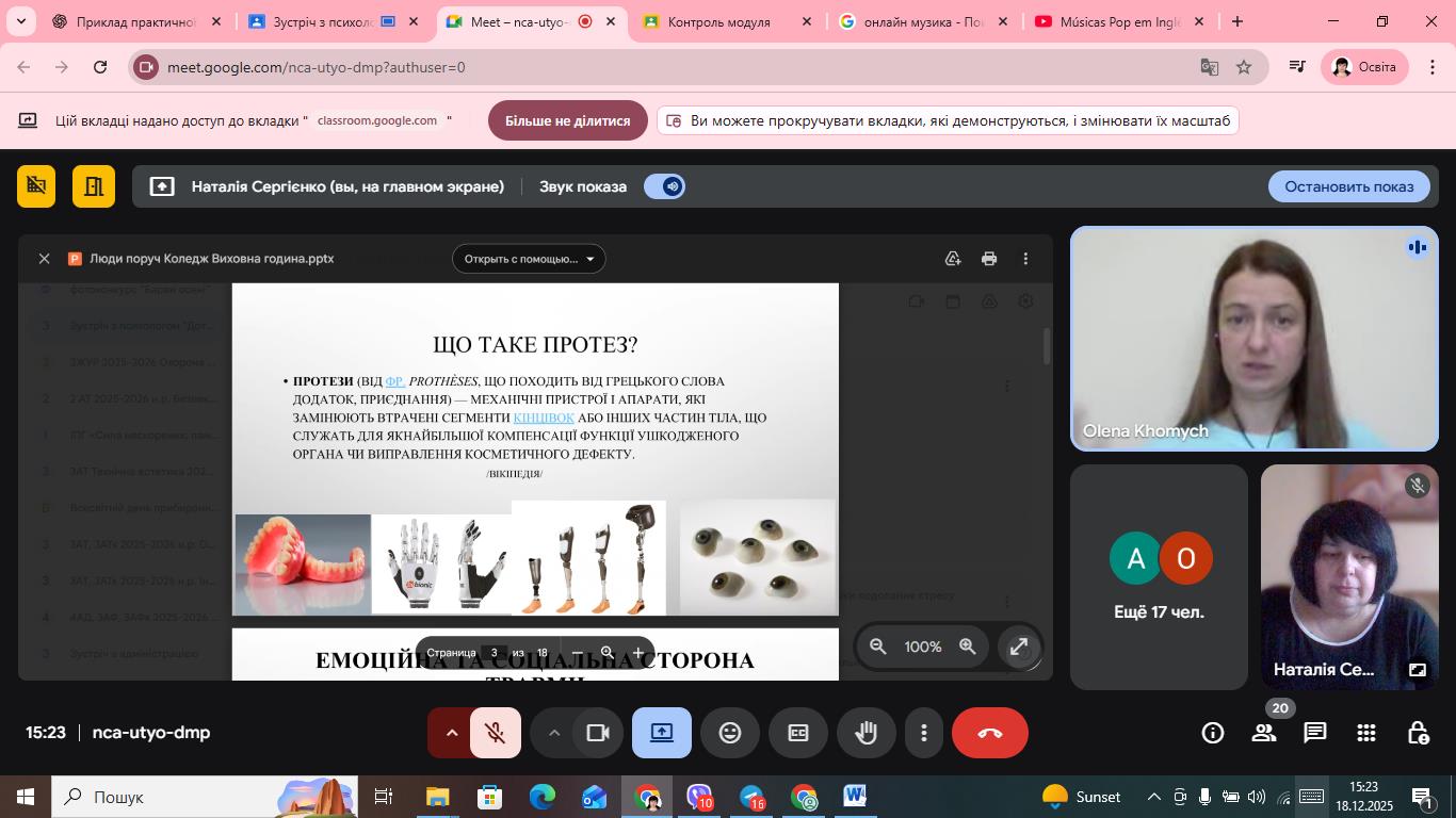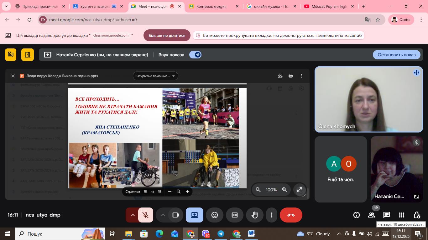 У ВСП «Лисичанський педагогічний коледж ДЗ “Луганський національний університет імені Тараса Шевченка”» 18 грудня відбувся урок безбар’єрності на тему «Люди поруч. Життя з протезами та пораненнями» (зустріч з психологом Хомич О.М.).