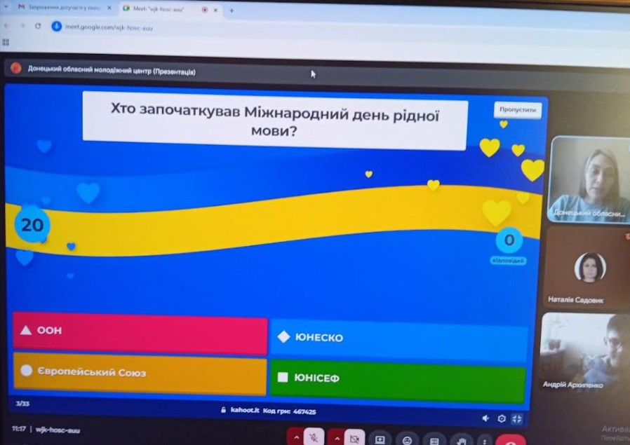 Студент 3 курсу Тараненко І. взяв участь в онлайн-вікторині до Дня рідної мови, що проводилась Донецьким обласним молодіжним центром. Самохін В. засвідчив володіння українською мовою під час національного фестивалю «Код нації».