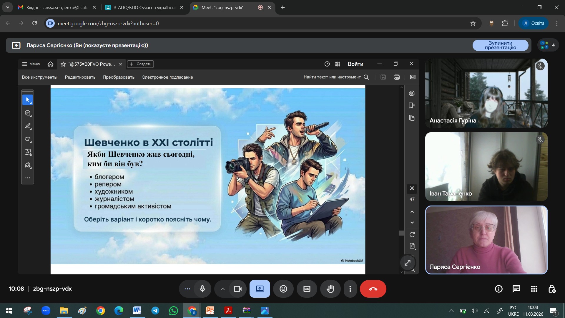 Цього року викладачі та студенти Лисичанського педагогічного фахового коледжу не тільки згадували біографію поета, мандрували віртуальними екскурсіями, а й намагались зрозуміти, яким би був сучасний Шевченко.