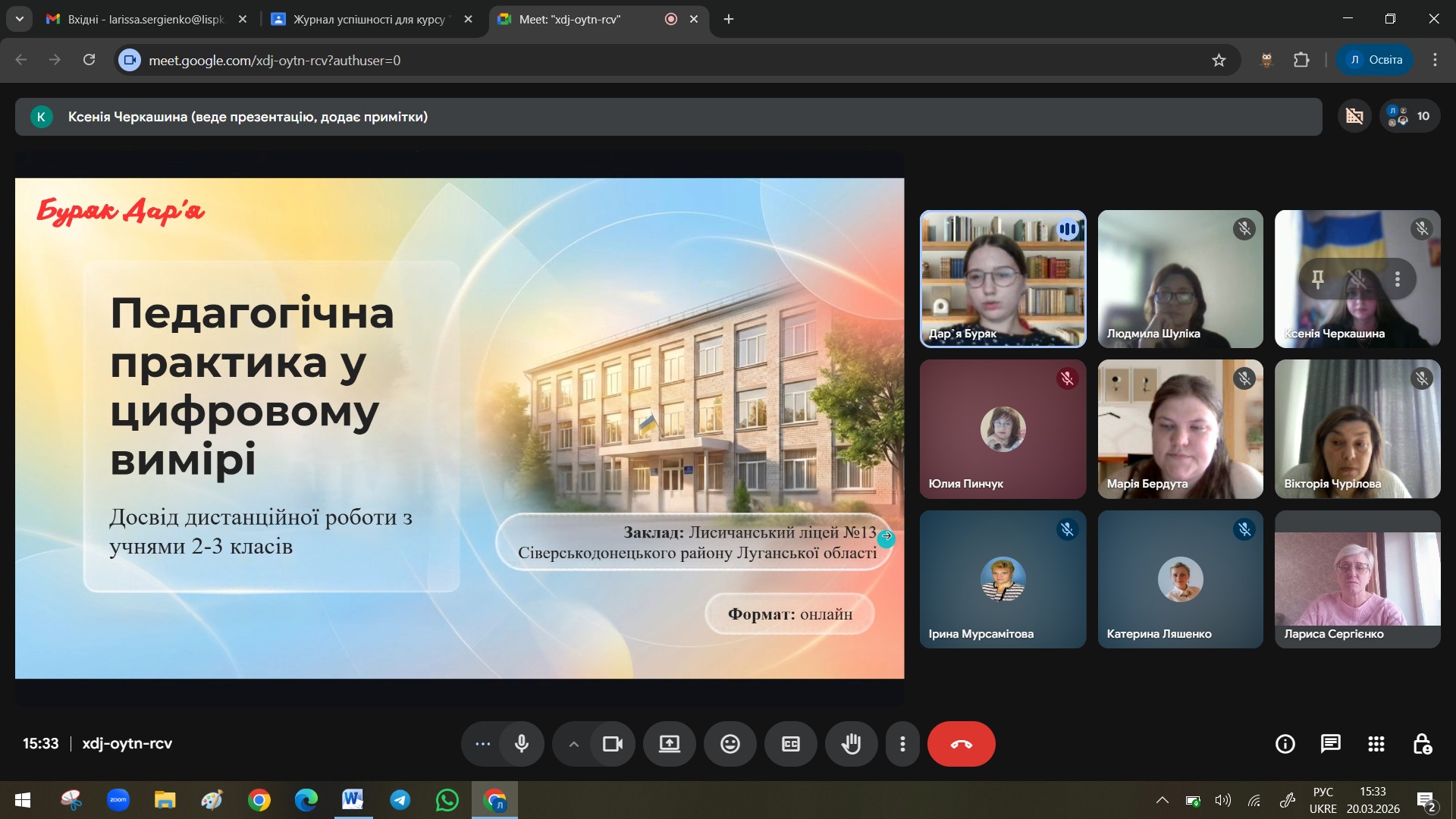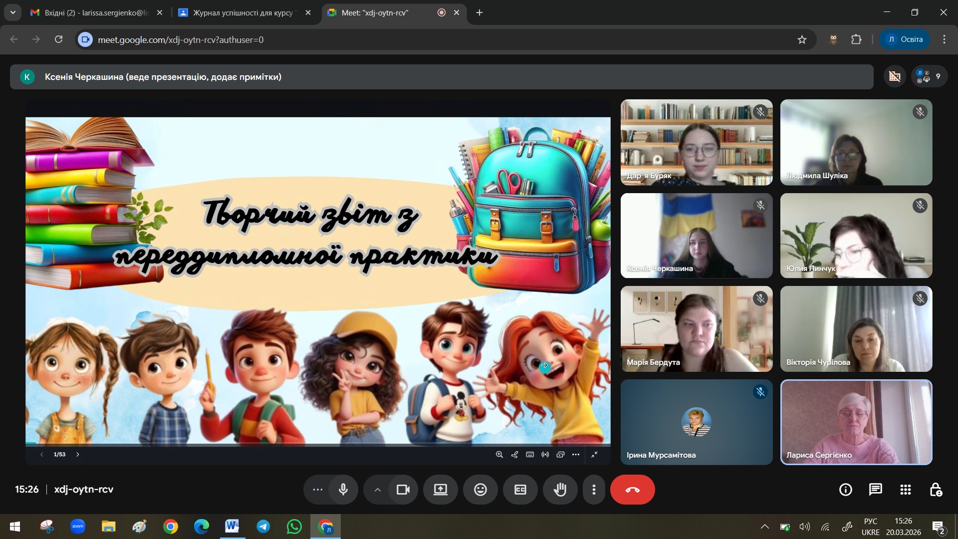 Переддипламна практика була організована у дистанційному форматі на платформі Google G Suite For Education, та тривала з 26 січня до 20 березня 2026 року, поряд із цим декілька здобувачів освітніх послуг надали клопотання про проходження практики на базі ЗЗСО.