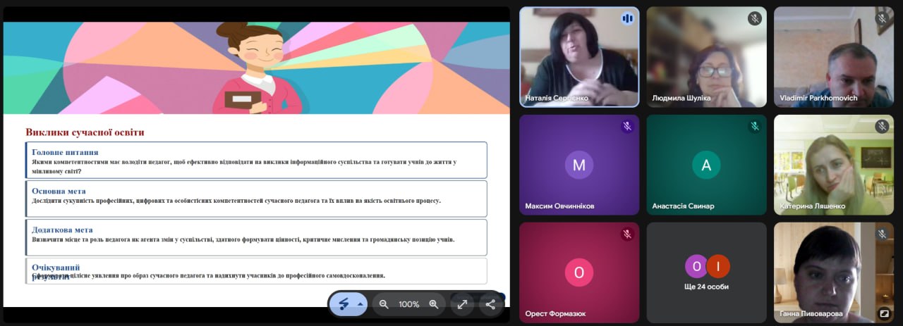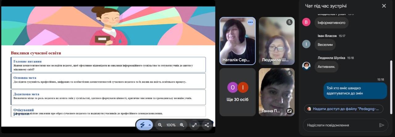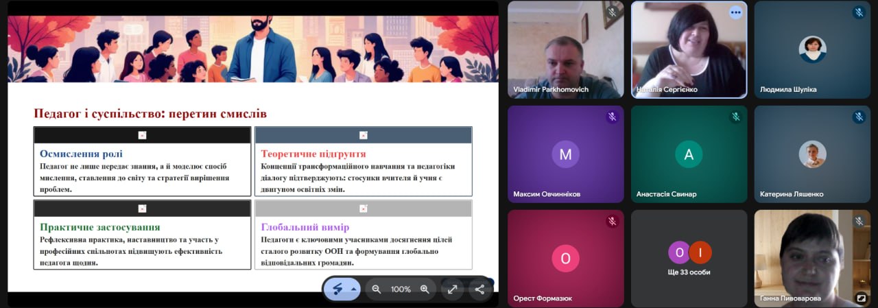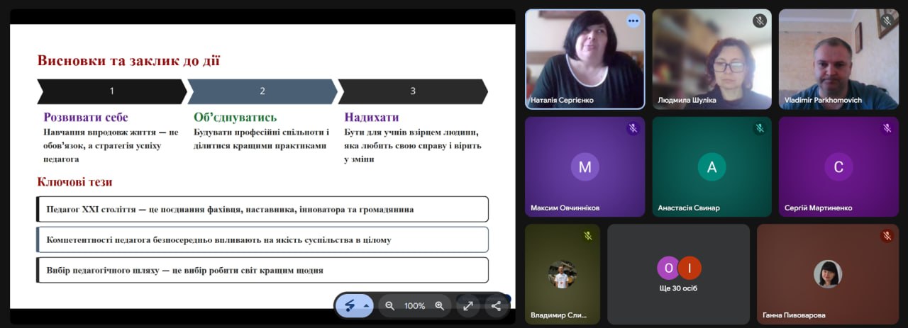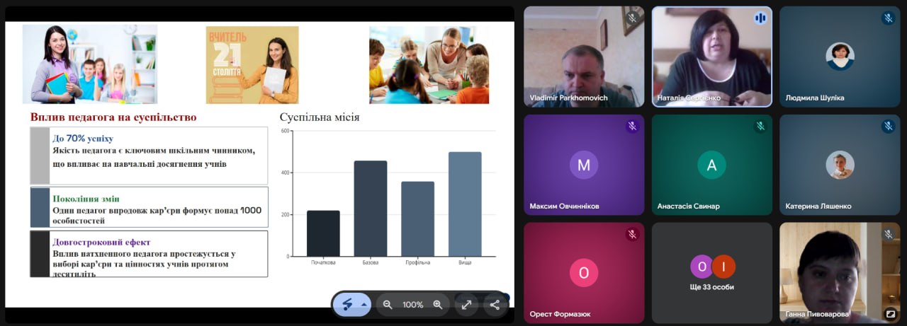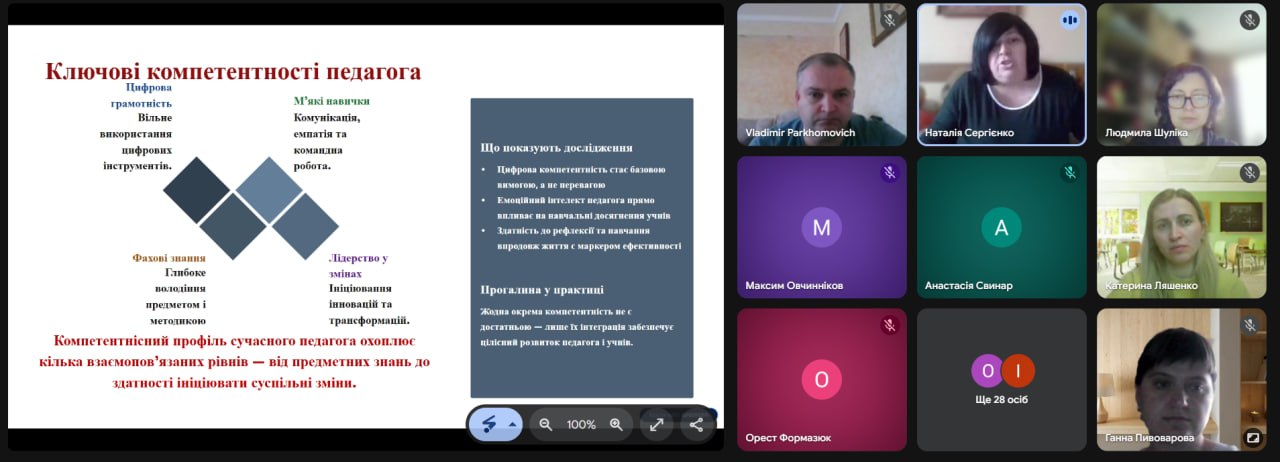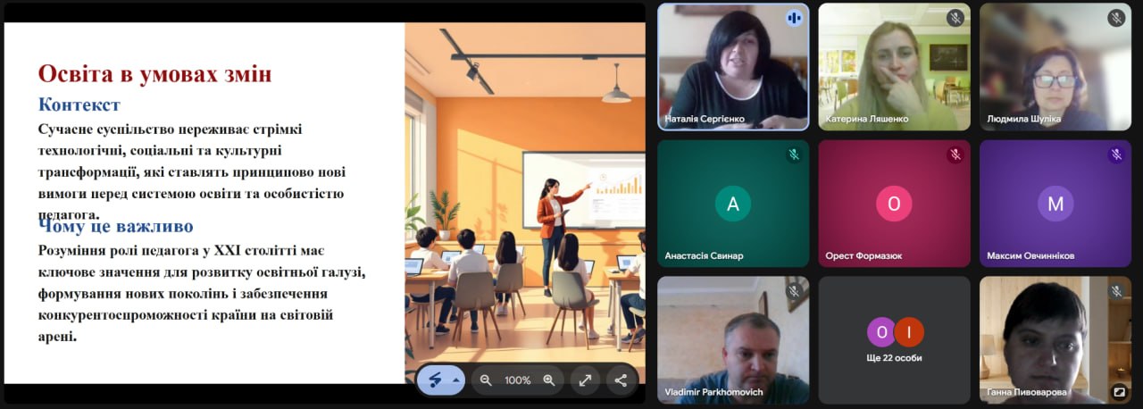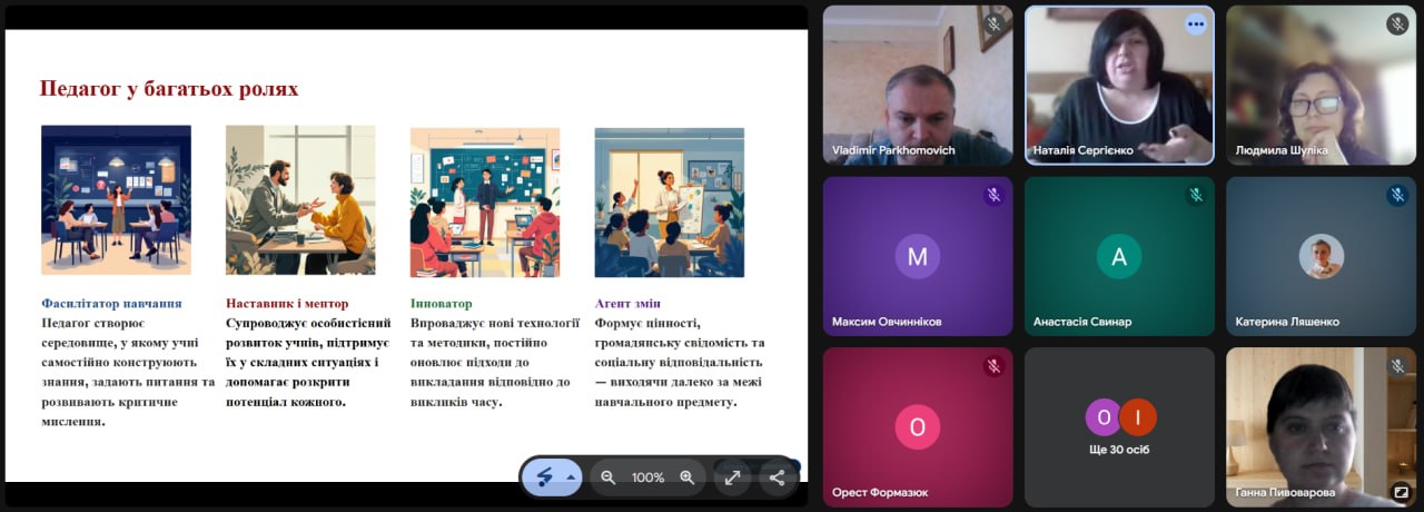 Особливу зацікавленість викликало інтерактивне онлайн-опитування, під час якого учасники сформували «образ сучасного вчителя», визначивши такі риси, як креативність, цифрова грамотність, комунікабельність та відповідальність.