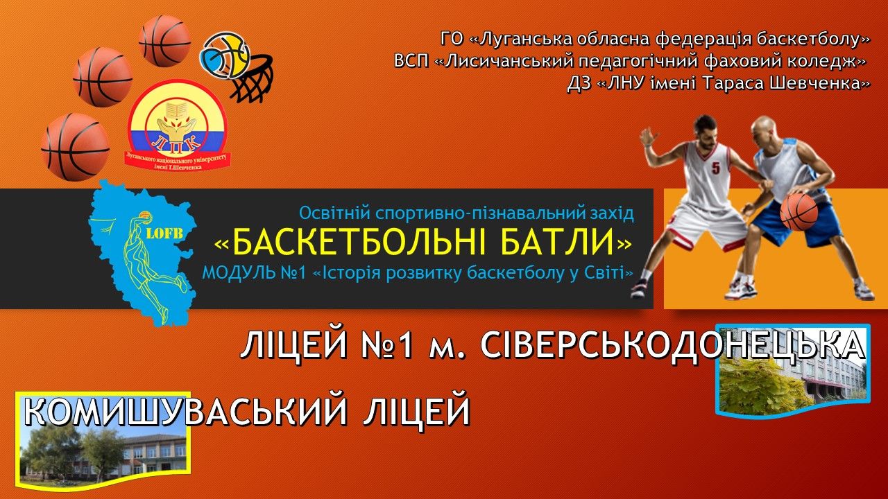 ВСП «Лисичанський педагогічний фаховий коледж ДЗ «Луганський національний університет імені Тараса Шевченка» у дружній співпраці з ГО «Луганська обласна федерація баскетболу» розпочинає серію навчально-розважальних модулів в рамках освітнього спортивно-пізнавального заходу серед учнівської молоді «Баскетбольні батли». Метою заходу є пропагування здорового способу життя, залучення учнівської та студентської молоді до систематичних занять фізичною культурою та спортом, популяризації баскетболу в закладах освіти Луганської області, проведення профорієнтаційної роботи, набуття практичних навичок та удосконалення професійних знань майбутніх фахівців освіти в організації та проведені спортивно-масових і фізкультурно-оздоровчих заходів.