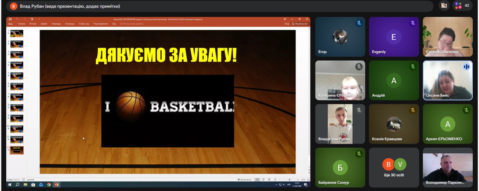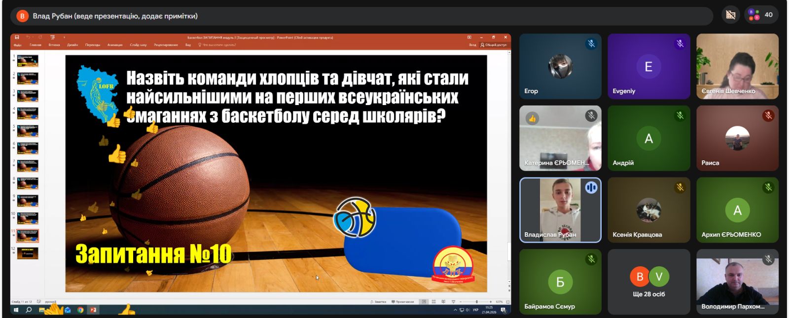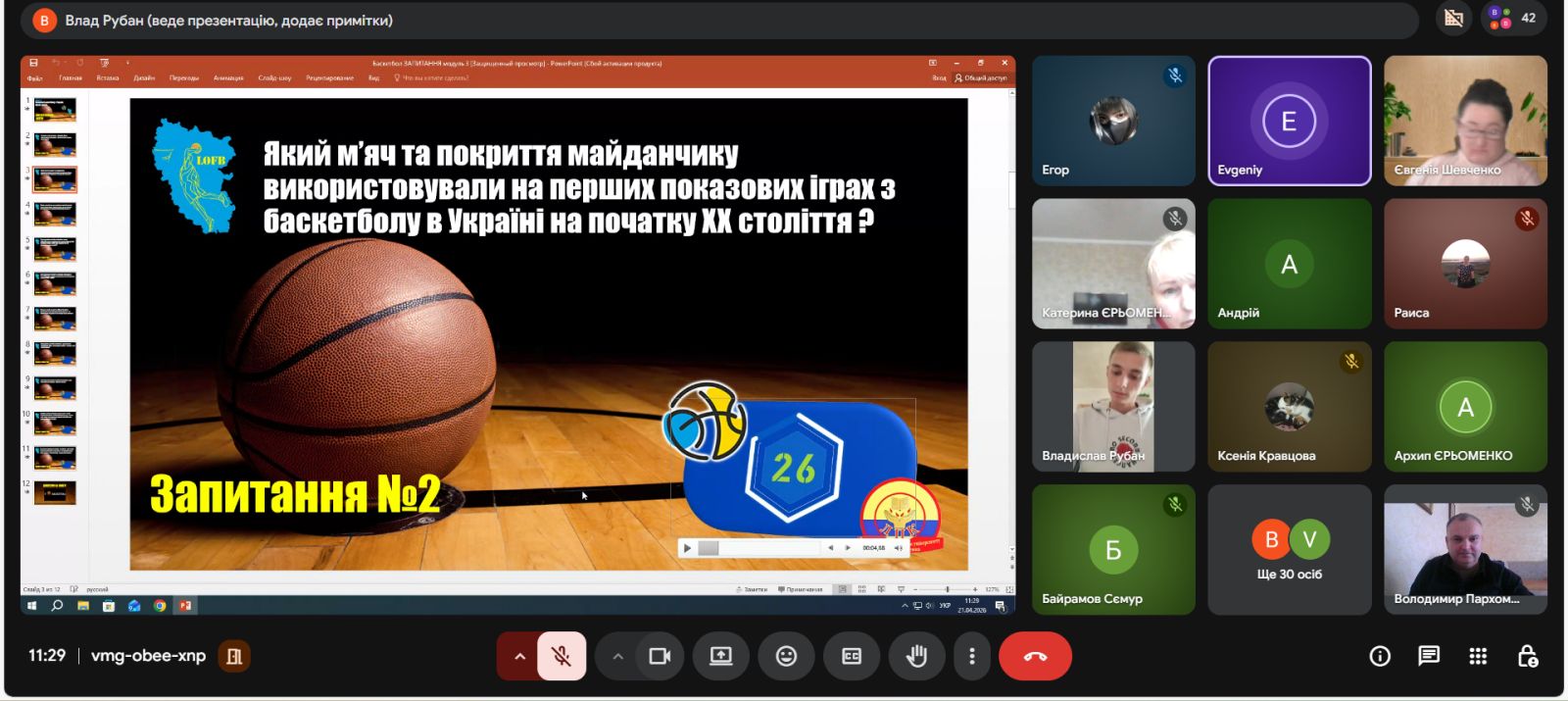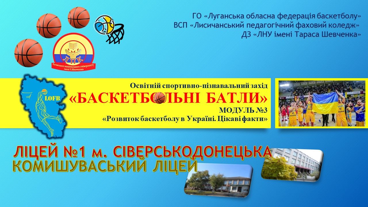 В рамках проведення останнього третього модулю вищезазначеного заходу, темою якого стало «Розвиток баскетболу в Україні. Цікаві факти», зустрілися команди учнів та учениць Ліцею №1 м. Сіверськодонецька і Комишуваського ліцею Попаснянської міської територіальної громади.